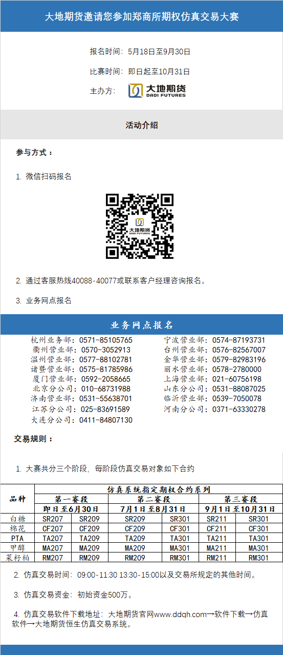 大地·活动∣大地期货邀请您参加郑商所期权仿真交易大赛 第二赛段